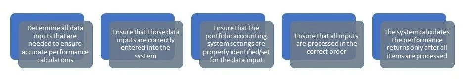 The inherent qualities of an Investement Performance Manager requires one to be very detailed, methodical and extremely organized. As Performance Platforms calculate returns in the same manner, it becomes a matter of detailing out the Inputs that are needed so as to ensure proper calculation of the Outputs.
